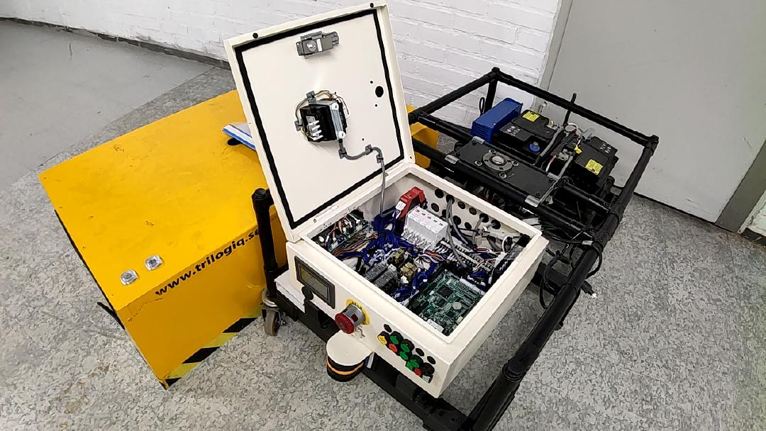 Kontrollerar 2axlar med Feta SEW motordrivare. Verkar dock vara 4st drivare i den. Har en PLC och diverse sliced I/O och kontroll skärm. Funkade innan magasinering. Högt komponentvärde sepparerat
